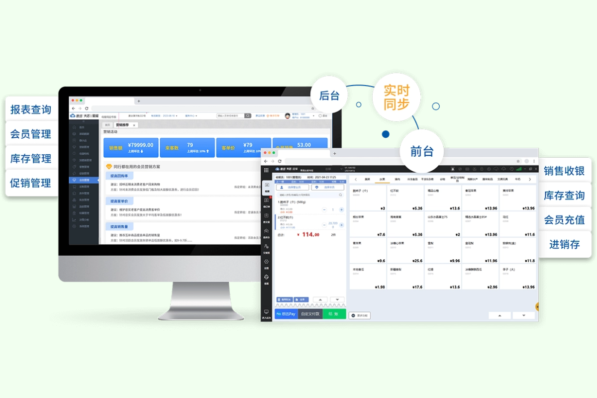 前台客户端日常收银,云后台经营管理;